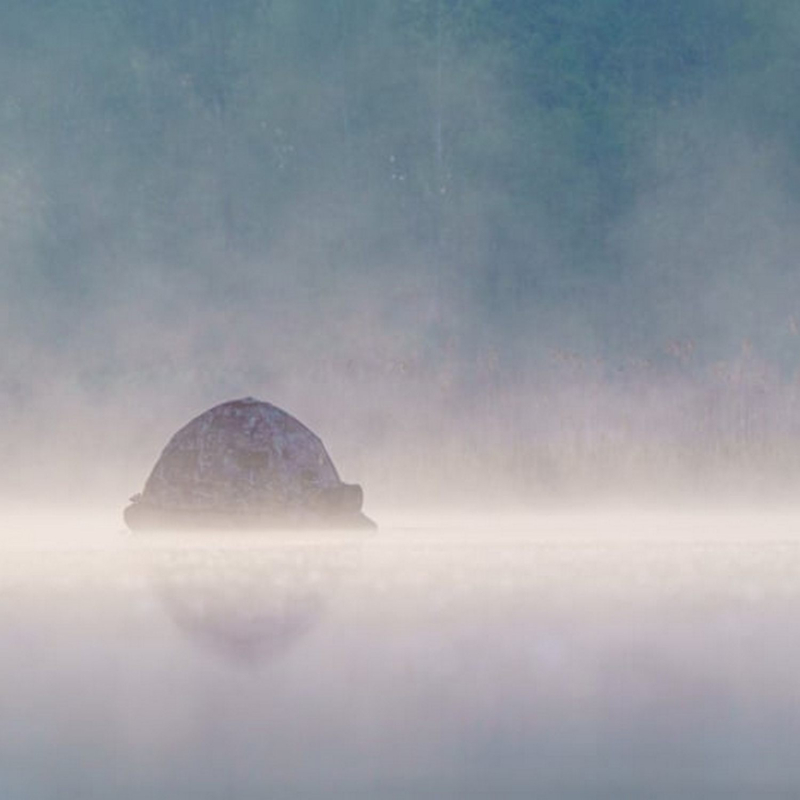 Mit diesem schwimmenden Fotozelt können Sie sich als Fotograf an Wildtiere an der Wasseroberfläche oder an deren Rändern heranwagen, ohne sie zu stören oder zu erschrecken. Da sie Sie nicht mehr als Menschen wahrnehmen, sehen sie keine Gefahr und Sie können oft großartige Fotos aus nächster Nähe machen.